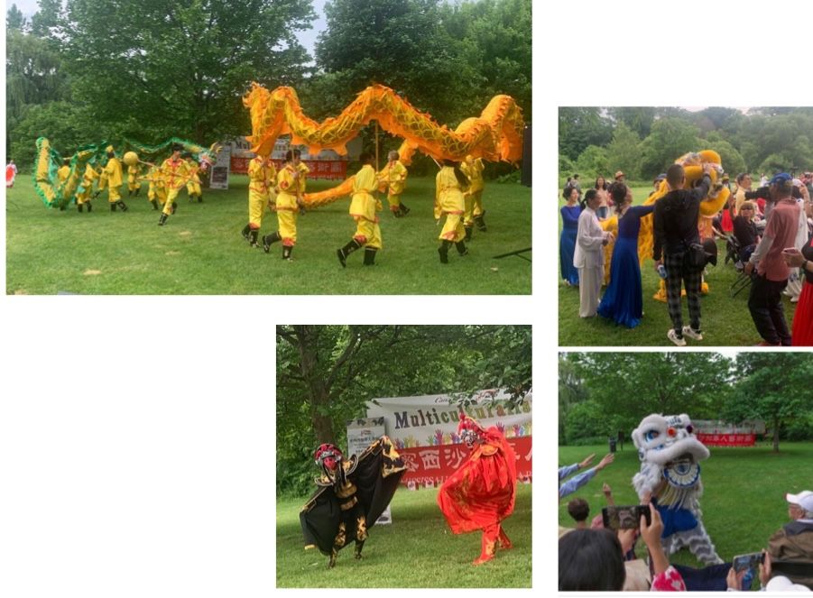 在密市华人艺术团举办的2025年多伦多元文化Fun day上的舞龙、舞狮。