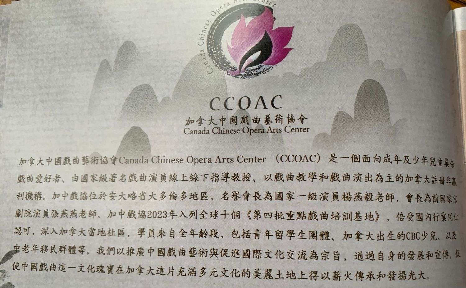 于2015年创办“加拿大中国戏曲艺术协会”
