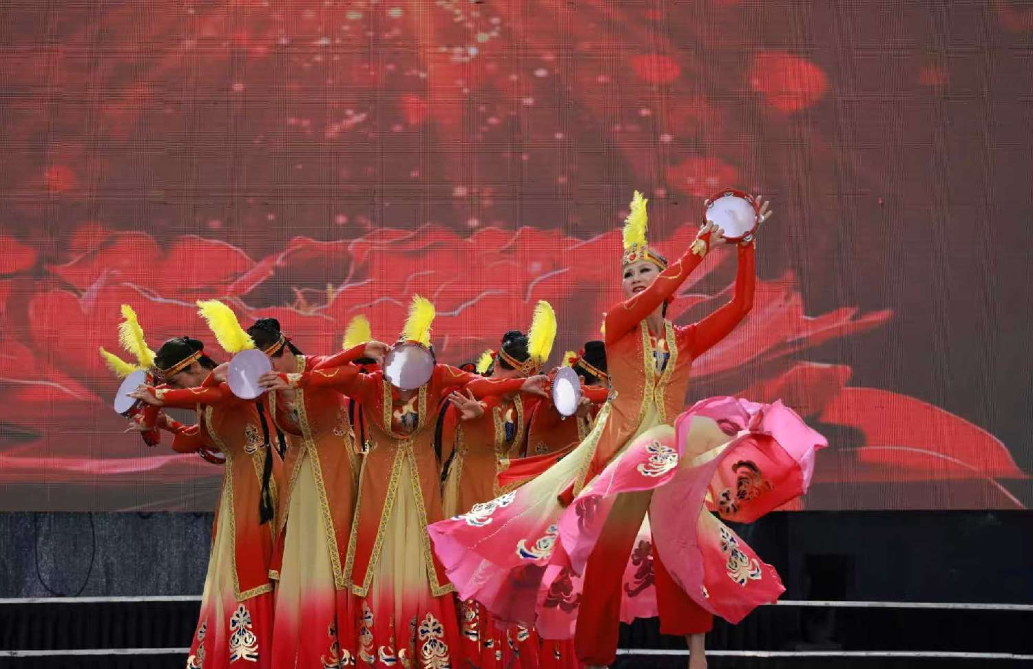主舞台上,又是大鼓、腰鼓舞打头,又是歌舞升平,