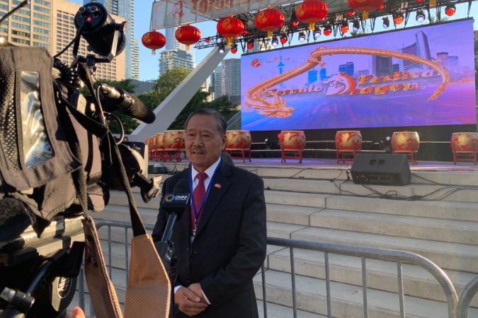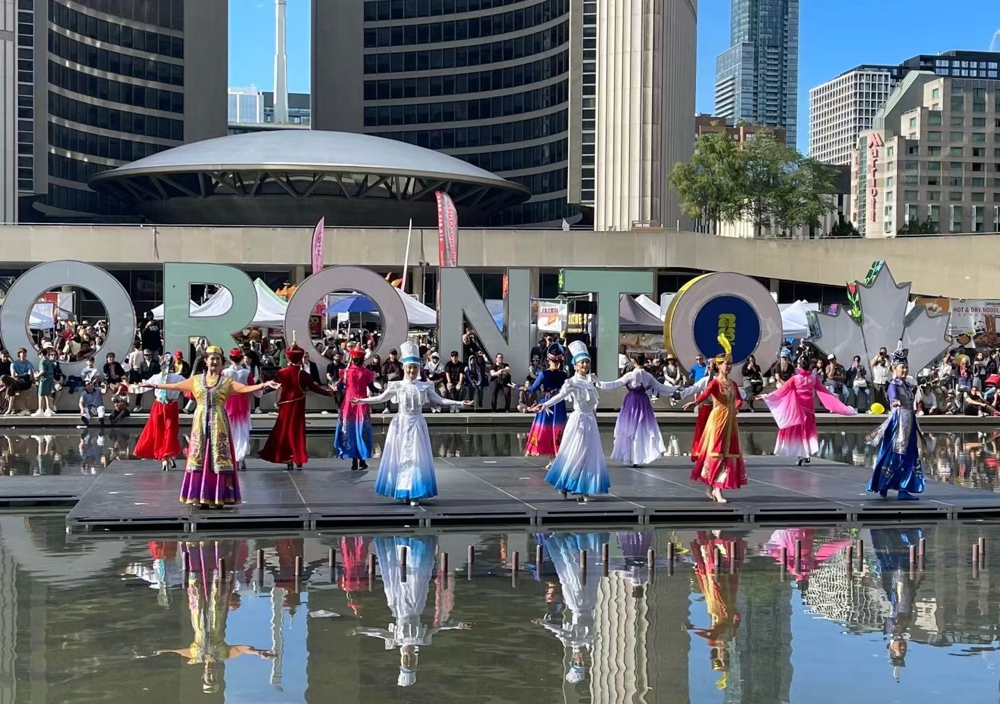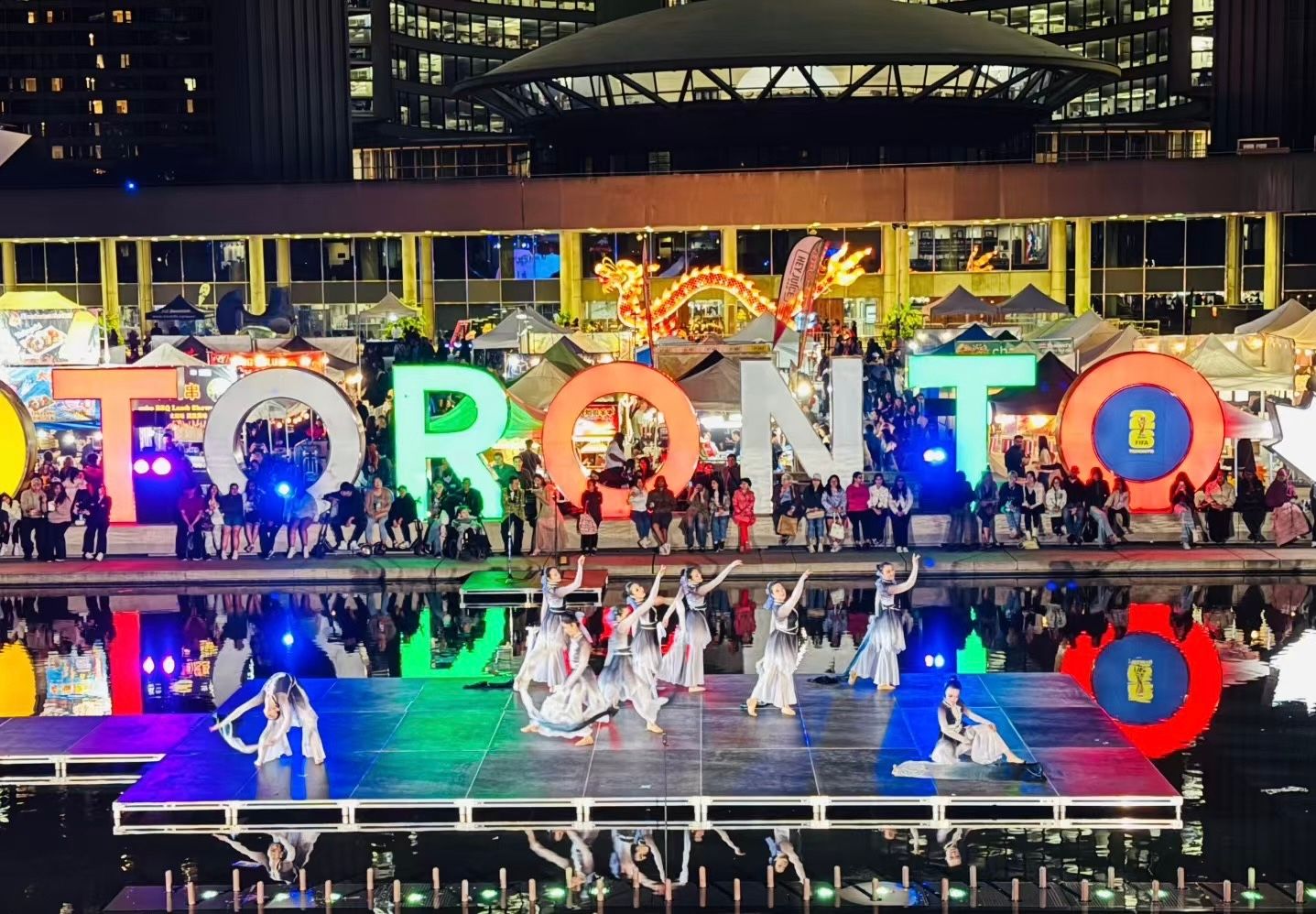 8月31日晚,在多伦多市政厅广场(Nathan Philips Square),由加拿大华人文化艺术团体联合会(