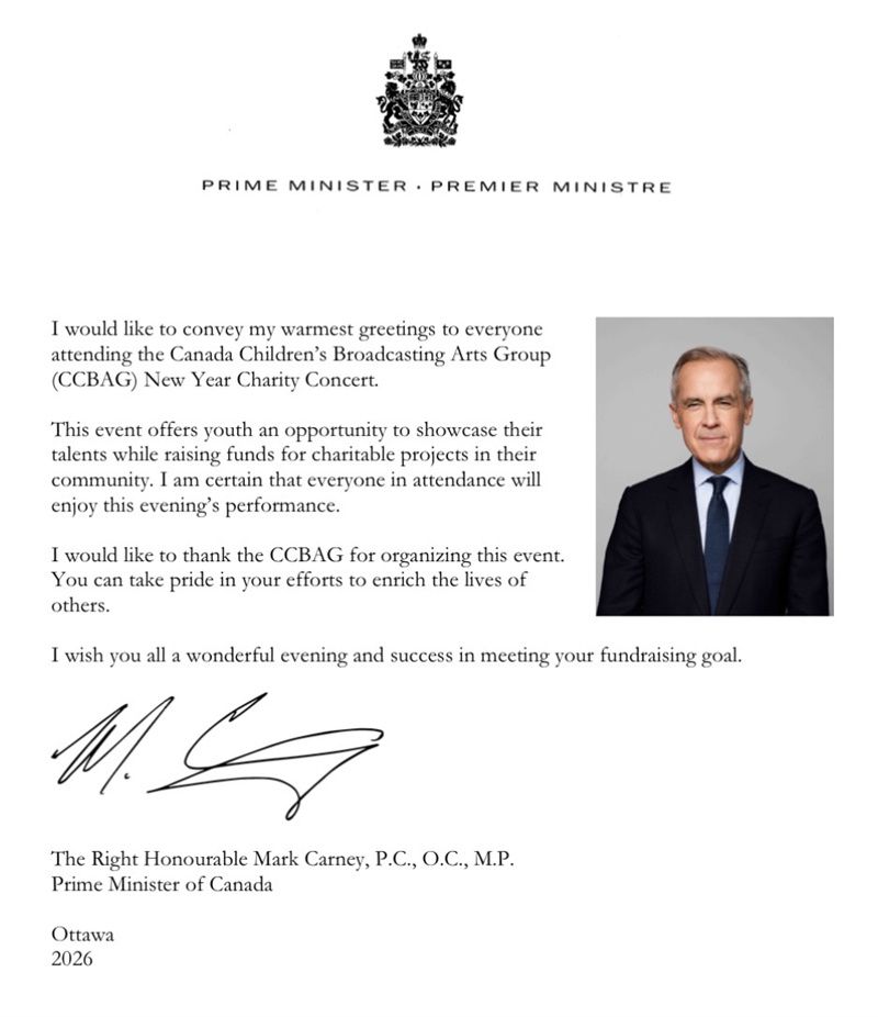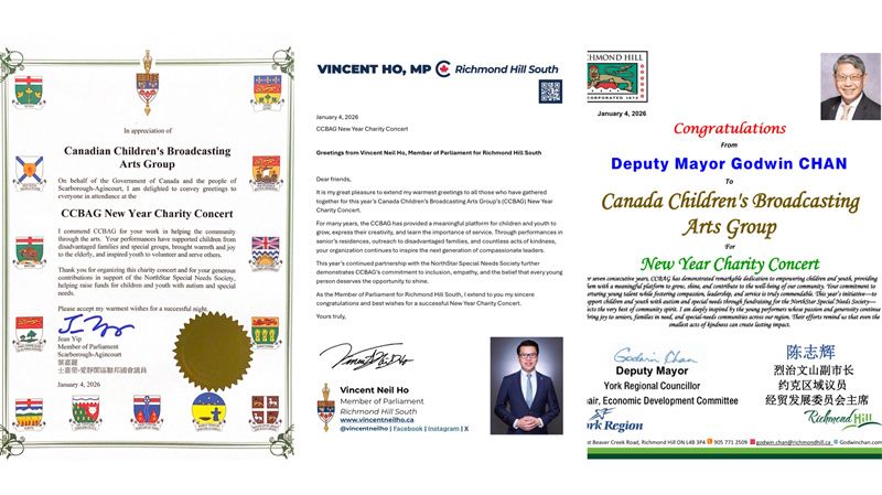 加拿大儿童广播艺术团(Canada Children’s Broadcasting Arts Group)于2026年1月4日在多伦多成功举办2026新年慈善音乐会。
