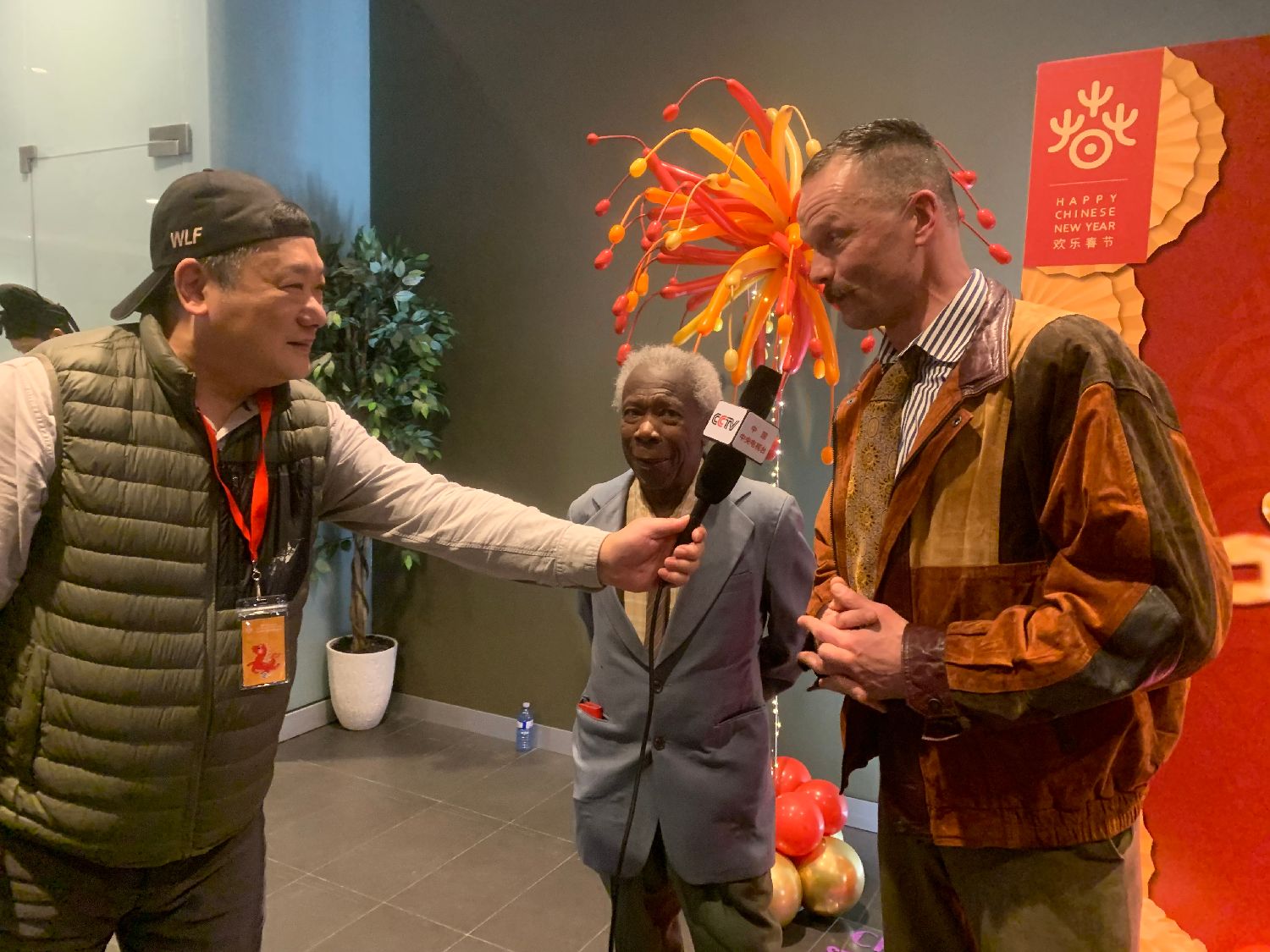 中央电视台驻多伦多首席记者张森现场采访异族观众。