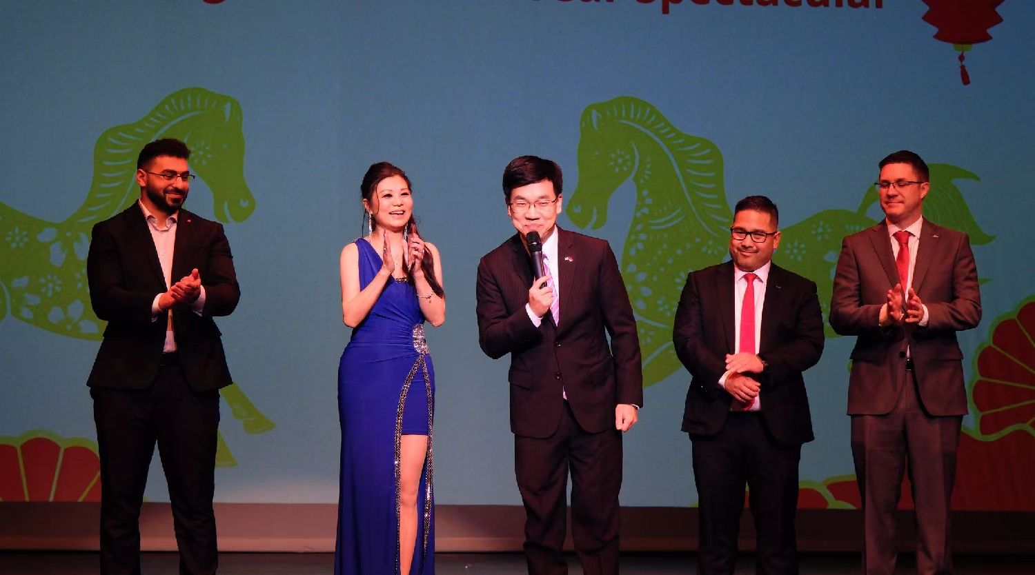 基金会共同主席Ricky甄、联邦国会议员Fares Al Soud、市议员Alvin Tedjo、副总领事卞周洲、市议员Joe Horneck