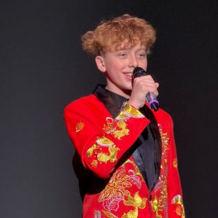 14岁洋小孩Andrew Yang Muhlbacher是小小中国通,登上过多伦多许多大舞台,他用中文演唱《快乐崇拜》。
