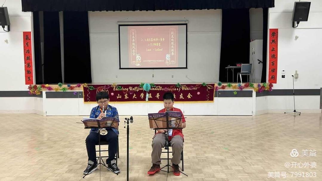 校友的孩子们Luca和Leland热情参加演出,他们带来的小号与单簧管二重奏真是有模有样。而青年校友王定安,于海亭,文东平,梁永强表演的三句半也把大家带回到调皮可爱的青春岁月。