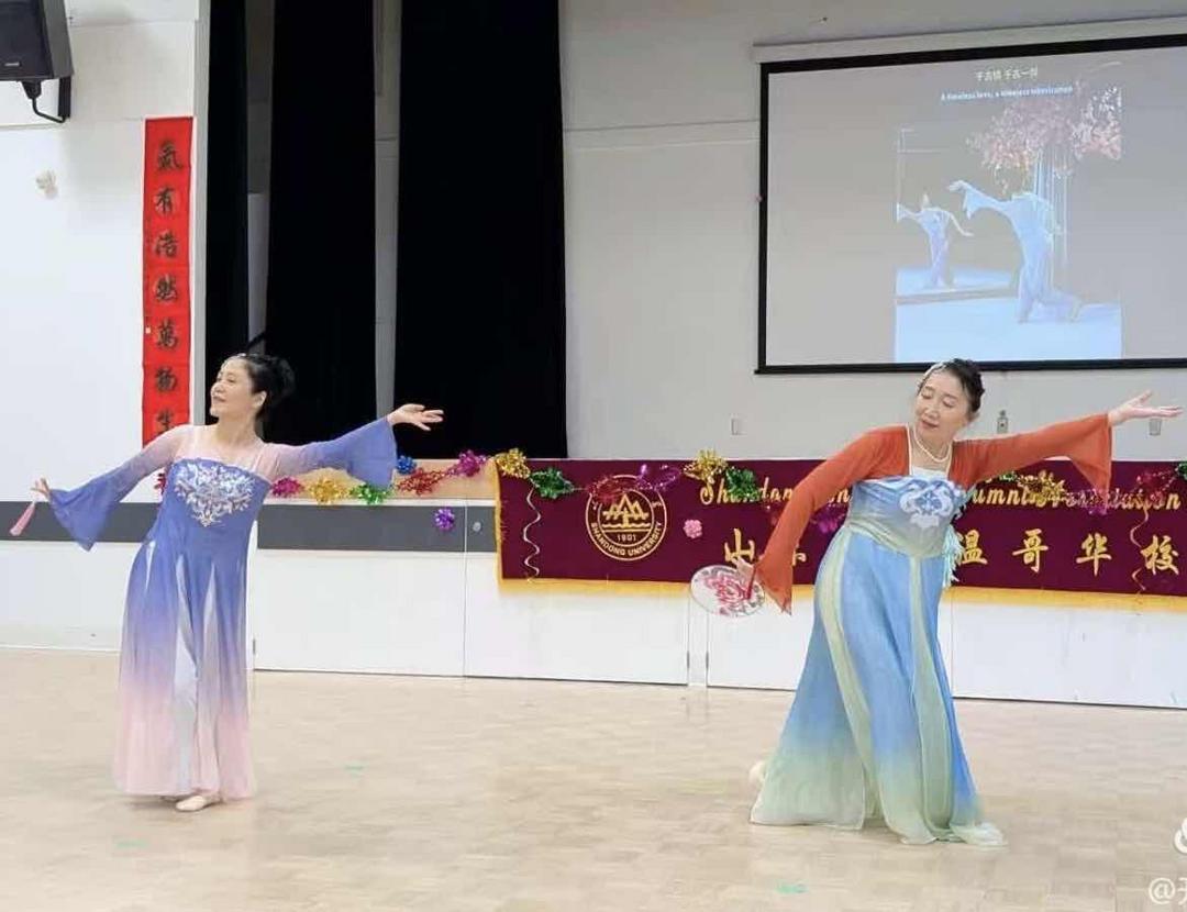 歌声唤起激情,舞蹈展示魅力。校友亲友刘秀芬表演的“梁祝”飘逸深情;校友段文卓和友人表演的“千古一醉”则舞步摇曳,描述出花落离人泪的情绪。