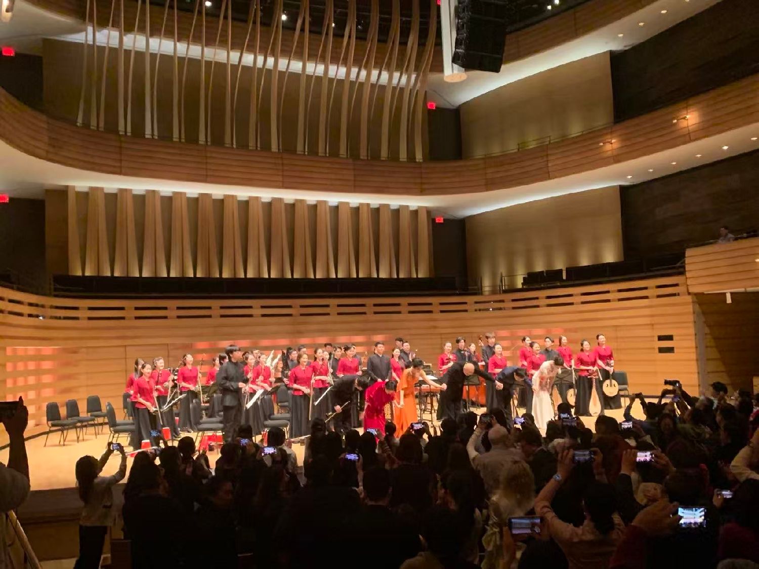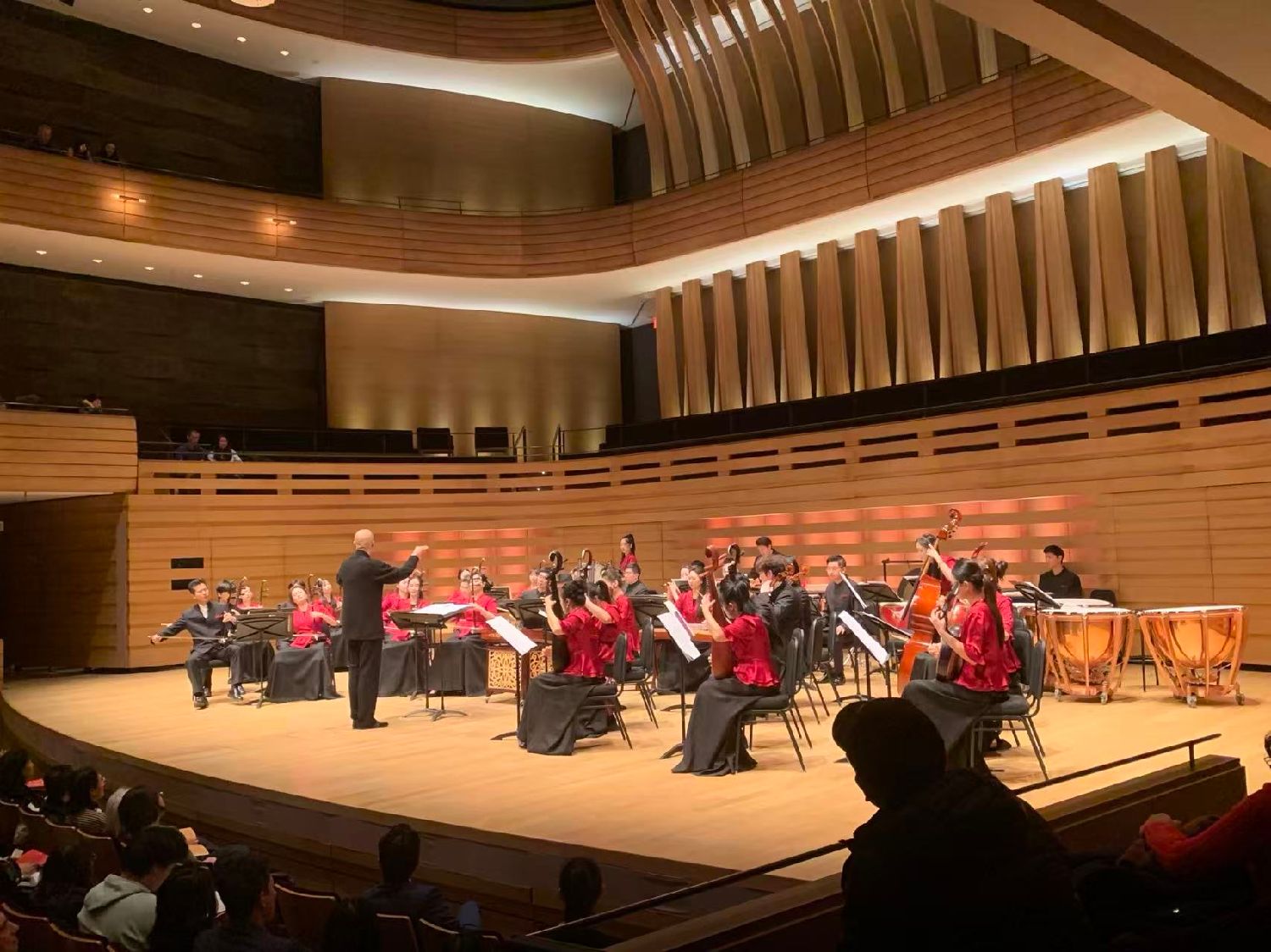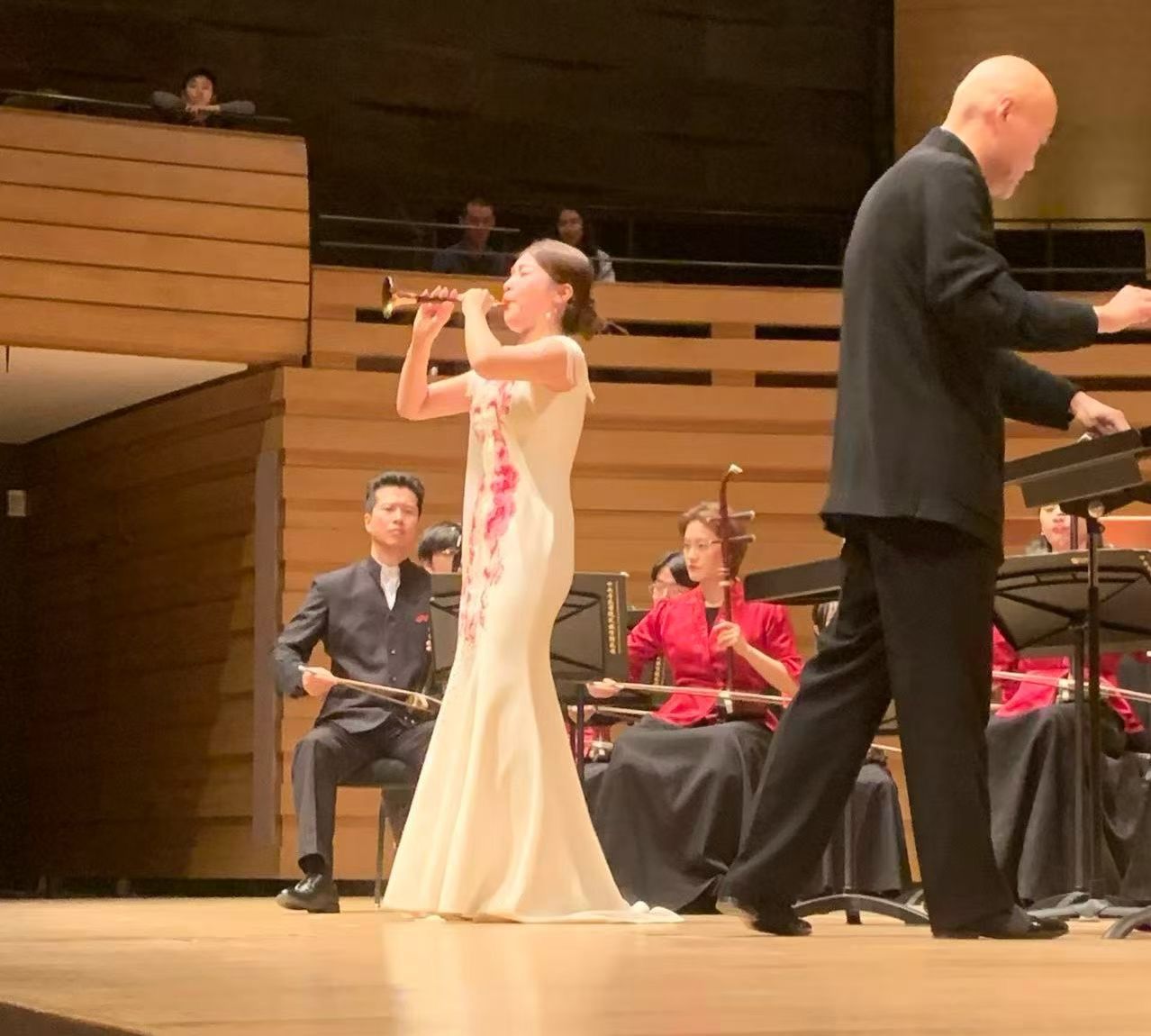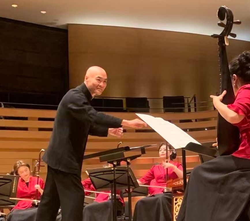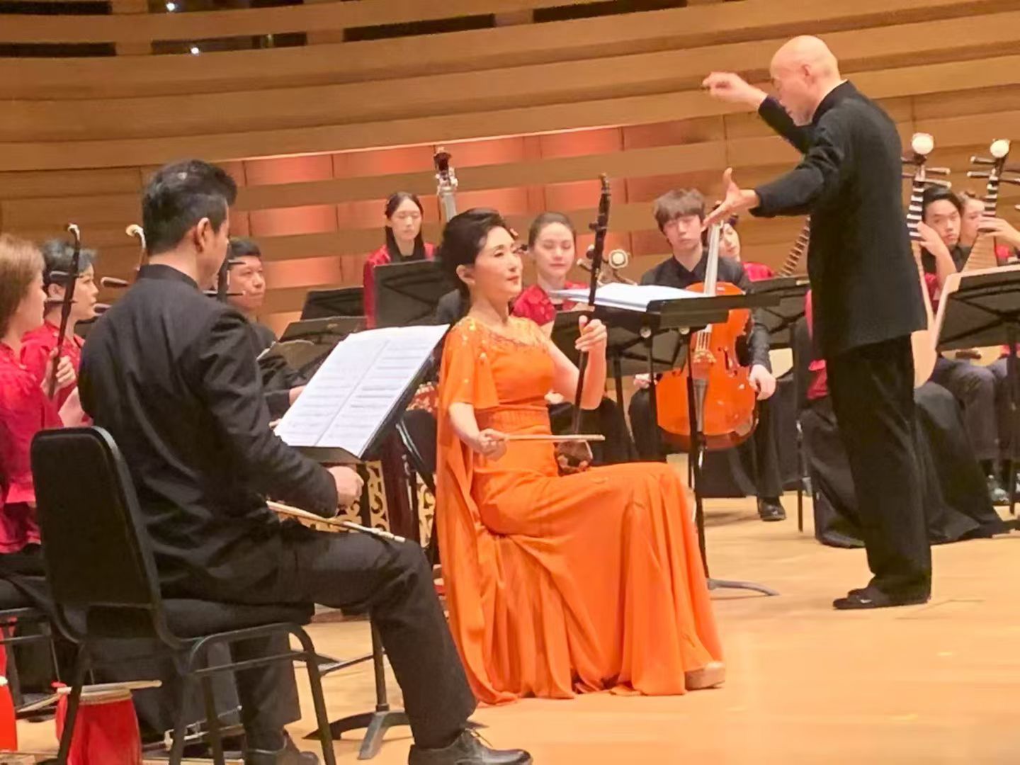 随着著名指挥家刘沙指挥棒挥舞,民族管弦乐《春节序曲》