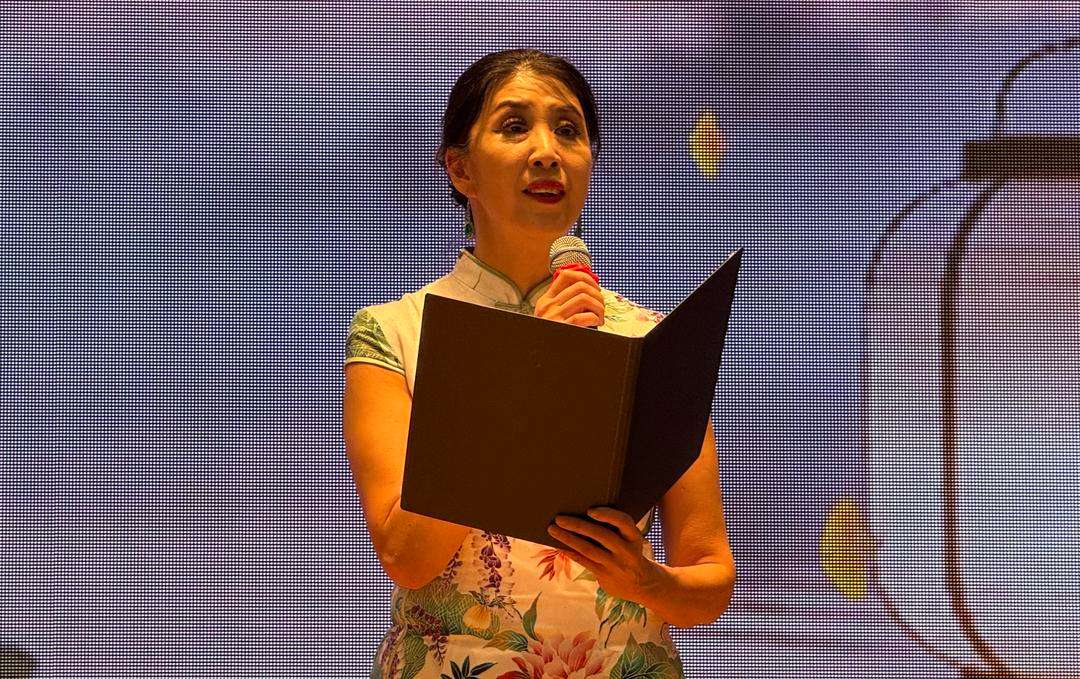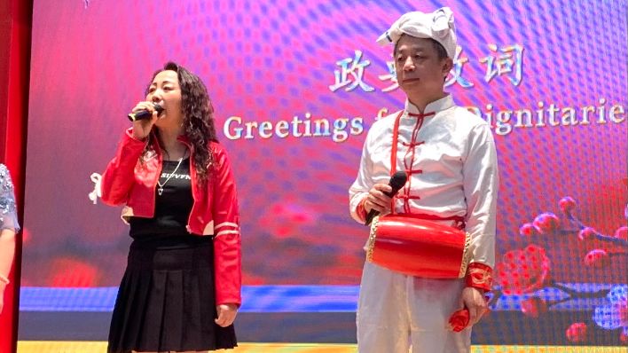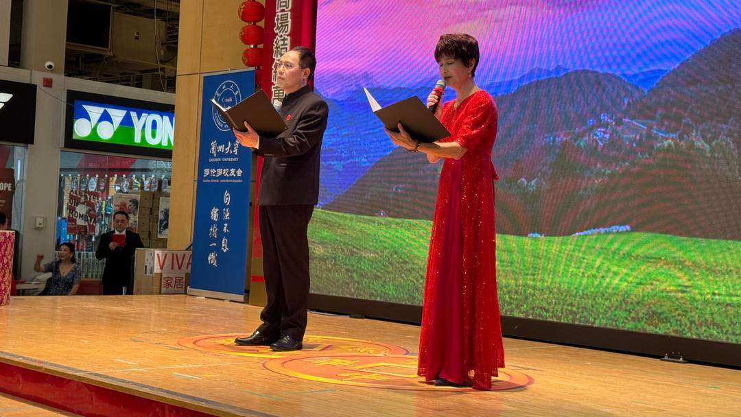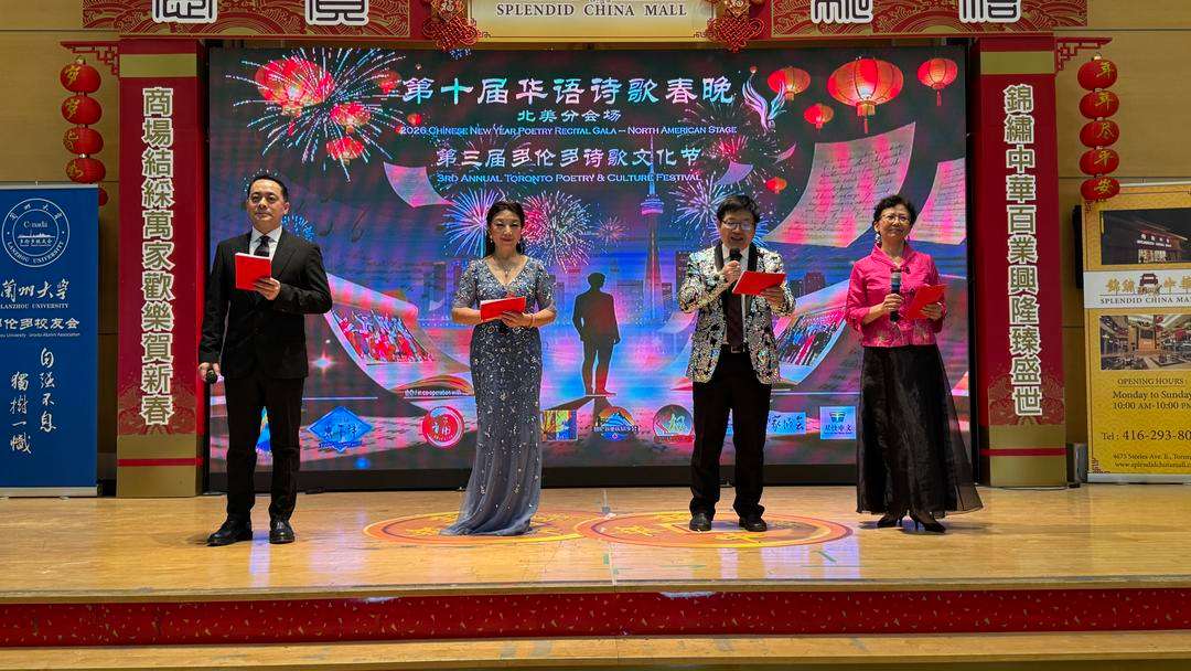 彧蛇致辞时回顾了华语诗歌春晚从北京主会场走向北美、