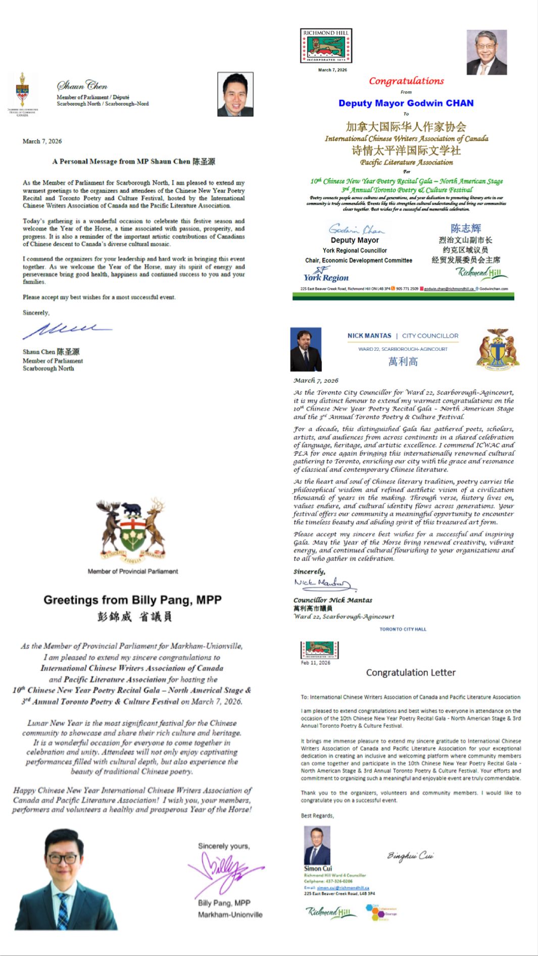 加拿大国会议员叶嘉丽(MP Jean Yip)、国会议员何諾軒(MP Vincent Ho)亲临现场并致辞,