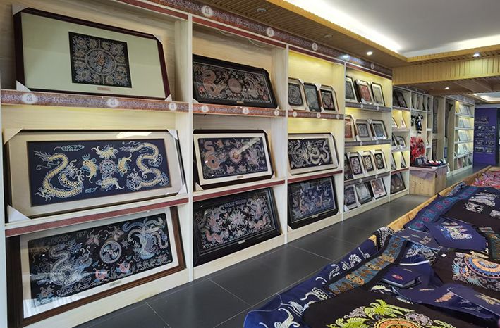在三都水族自治县非遗项目体验中心,不仅有传统的背带、绣花鞋等民间收藏品,还有简约且现代感十足的装裱绣片和时装。在这里,游客可以体验马尾绣的制作技艺,因此成为不少游客的“打卡地”。