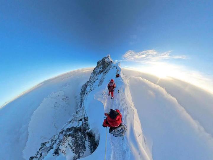 为了拍摄完整的攀登路线,他必须分别在珠峰大本营、c1营地、c2营地、c3营地、c4营地以及顶峰逐段拍摄一镜到底的航拍视频,再剪辑形成完整视频,这意味着摄影师必须先登顶珠峰。
