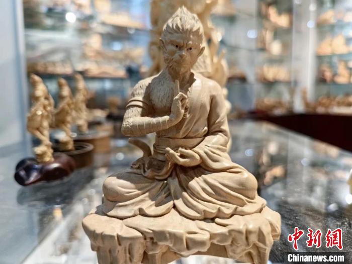 齐天大圣孙悟空形象的木雕作品。(图片来源:中新网)