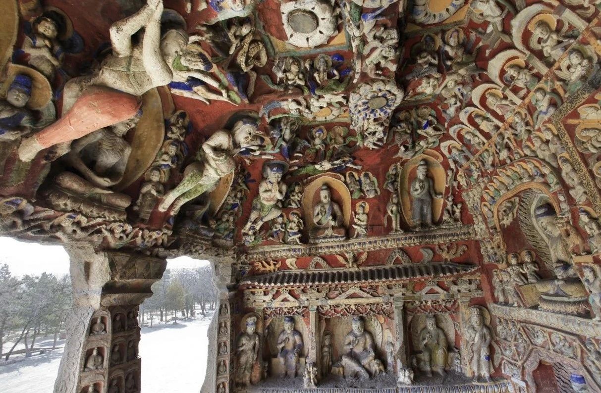 12月16日,云冈石窟第6窟重新开放。(图片来源:中新社/云冈研究院供图)