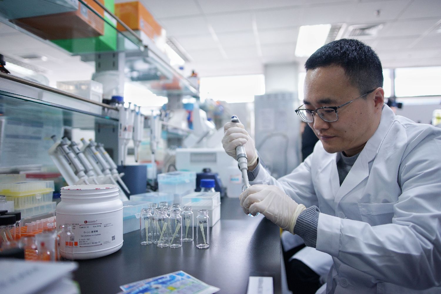 图为该成果文章通讯作者高书山在中国科学院天津工业生物技术研究所实验室里做实验。(图片来源:中新社)