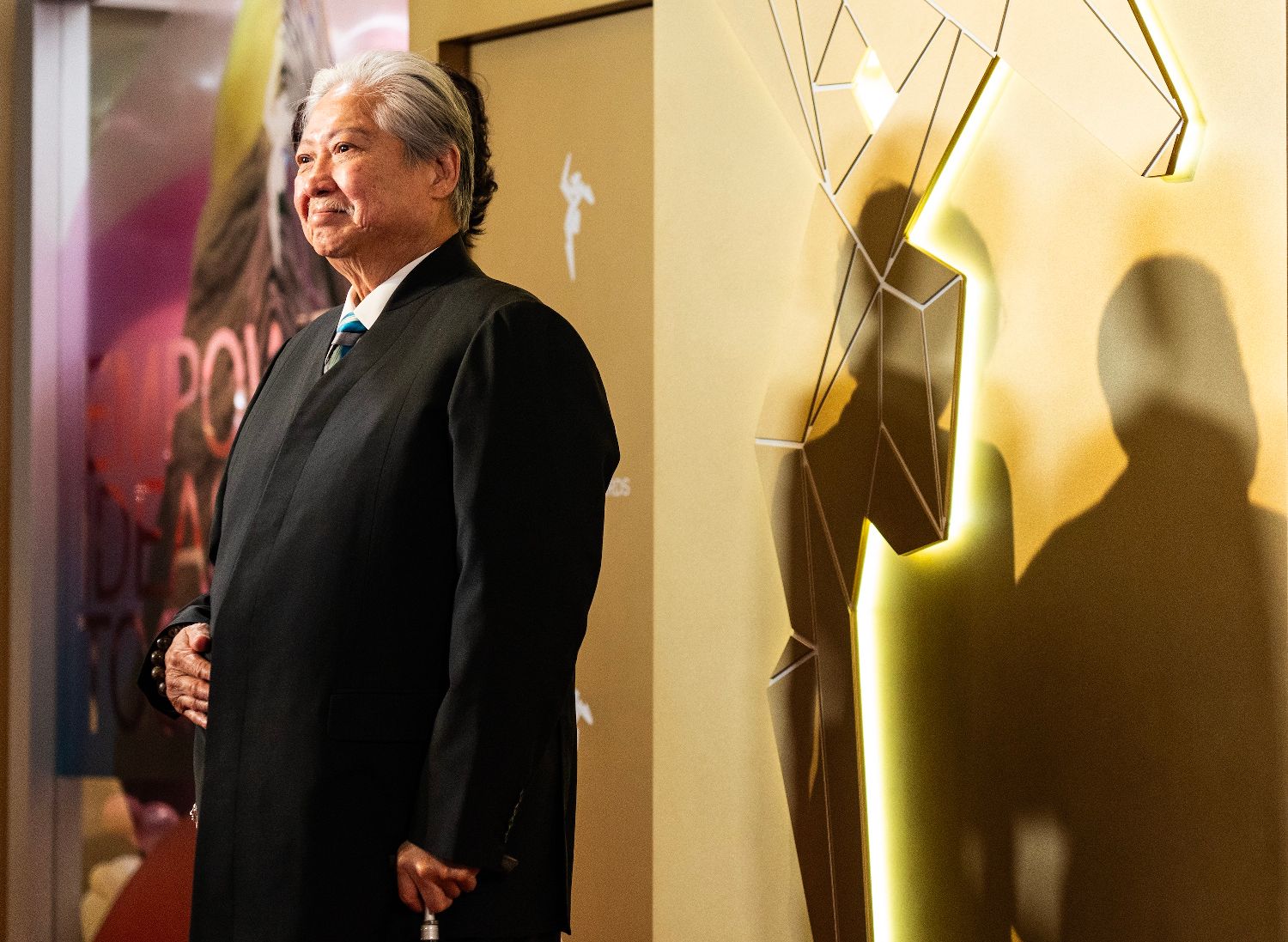 3月16日,第十八届亚洲电影大奖颁奖典礼在香港西九文化区戏曲中心举行。图为香港功夫影星洪金宝亮相红毯。(图片来源:中新社)