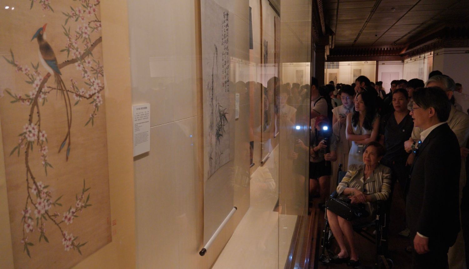 8月20日,庄万里之女庄良有参观“珠归海上:庄万里家族捐赠两塗轩书画展”。(图片来源:中新社)