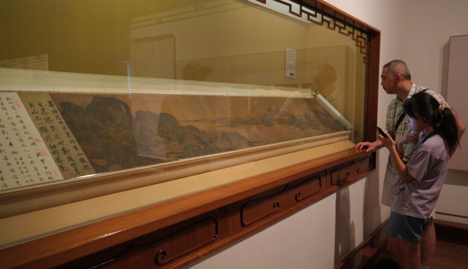 8月20日,宋代无款《秋山萧寺图卷》在上海博物馆人民广场馆展出。(图片来源:中新社)