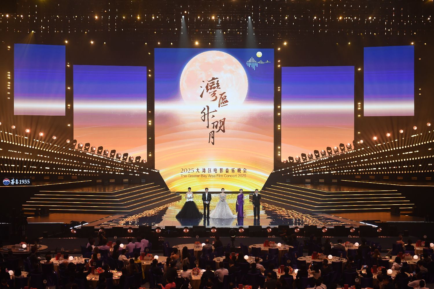 图为主持人主持“湾区升明月”2025大湾区电影音乐晚会。(图片来源:中新社)