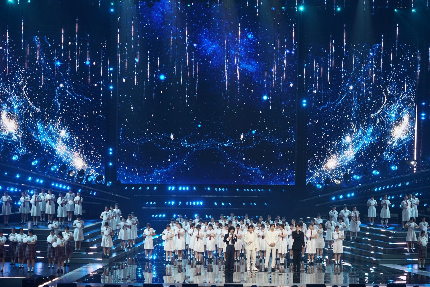 图为合唱歌曲《夜空中最亮的星》。(图片来源:中新社)