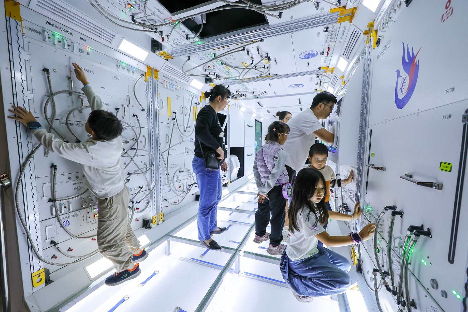 2025年12月21日,海南科技馆内的中国空间站模拟舱吸引参观者。(图片来源:中新社)