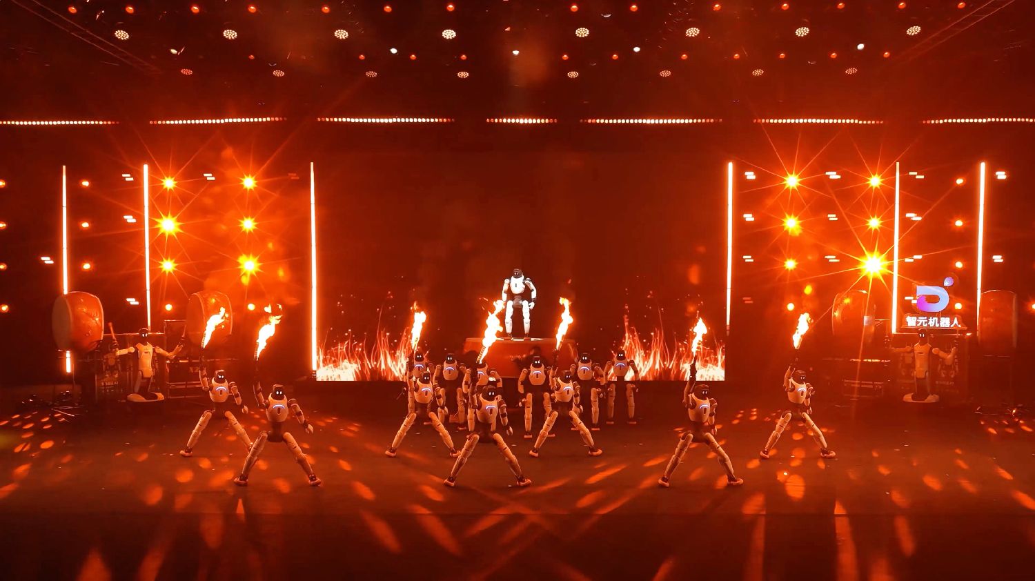 中新社报道,台上的机器人载歌载舞、变魔术、演小品;台下坐着的机器人“观众”挥舞“打call棒”欢呼。上海首个人形机器人量产企业——智元机器人,用200余台机器人组成了“演职团队”与“观众方阵”,推出的大型机器人晚会。