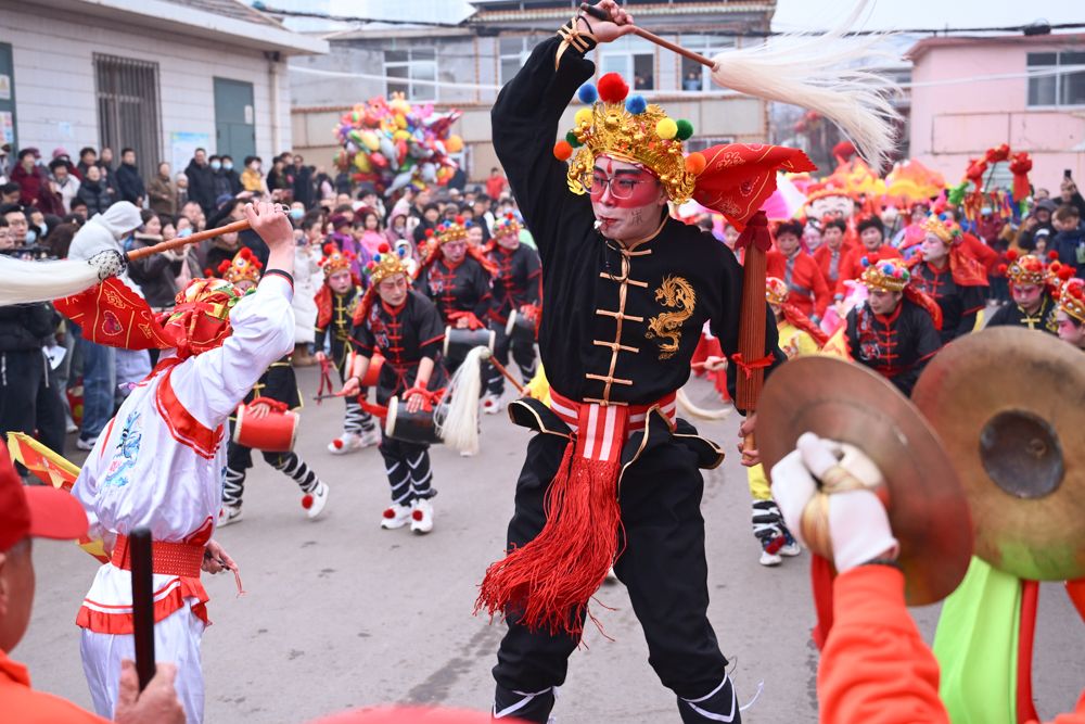 3月1日,山东烟台黄渤海新区山后初家村,秧歌巡游亮相渔灯节。(图片来源:中新社)
