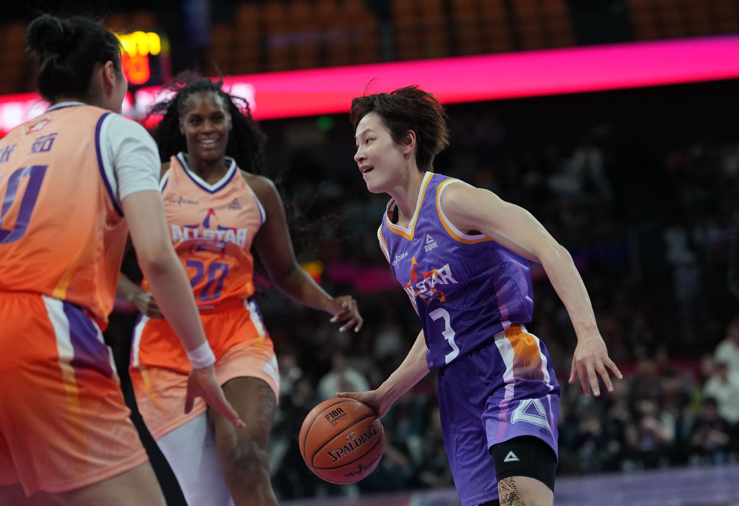 赛场上,杨力维、杨舒予、王思雨、黄思静等国手球员轮番献上高光时刻,精准的三分投射、流畅的突破上篮、默契的团队配合,充分展现出过硬的赛场实力与职业风采;年轻球员也抓住全明星舞台的机会,大胆展现技术特点。