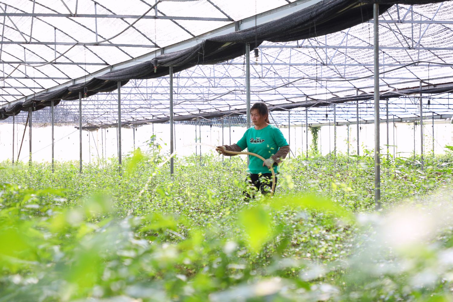 3月11日,广西金秀瑶族自治县一处中药瑶药材育苗示范基地里,工人正在浇水。(图片来源:中新社)
