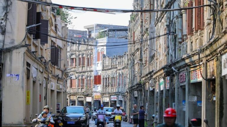 4月2日,具有南洋风情的文昌文南老街人来人往。(图片来源:中新网)