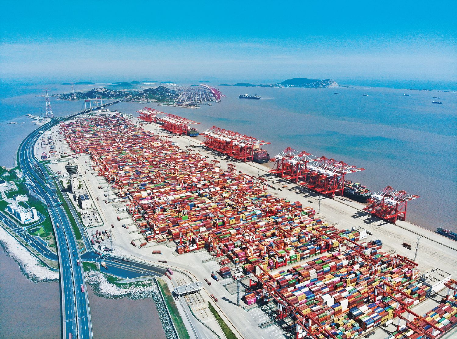 上海洋山深水港一、二、三期码头。(图片来源:中新社/上港集团供图)