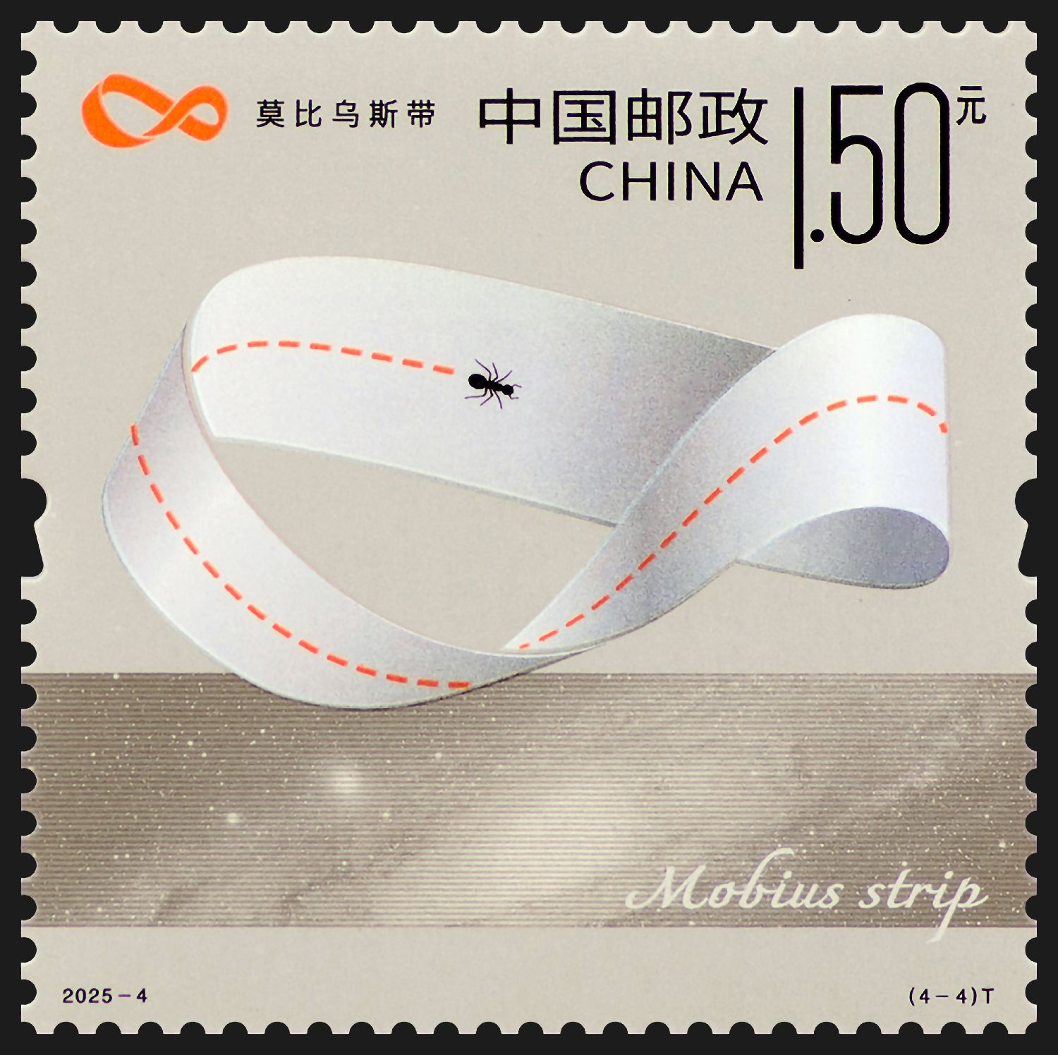近日,2025年世界最佳邮票评选结果揭晓,中国邮政发行的《数学之美》特种邮票的第4枚《莫比乌斯带》获“最佳创新邮票”类别第1名。(图片来源:中新社/中国邮政供图)
