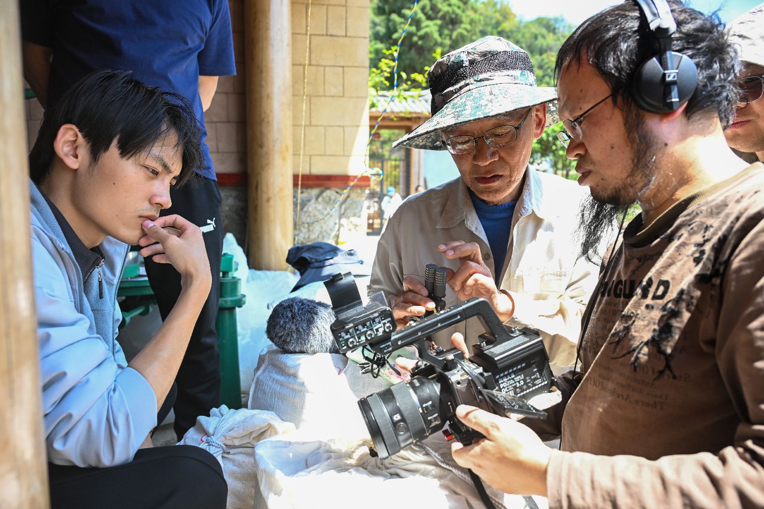 4月7日,台湾师范大学教师宋文胜(中)指导“茶音感官之旅”声景与纪录片工作坊现场的录制与拍摄。(图片来源:中新社)