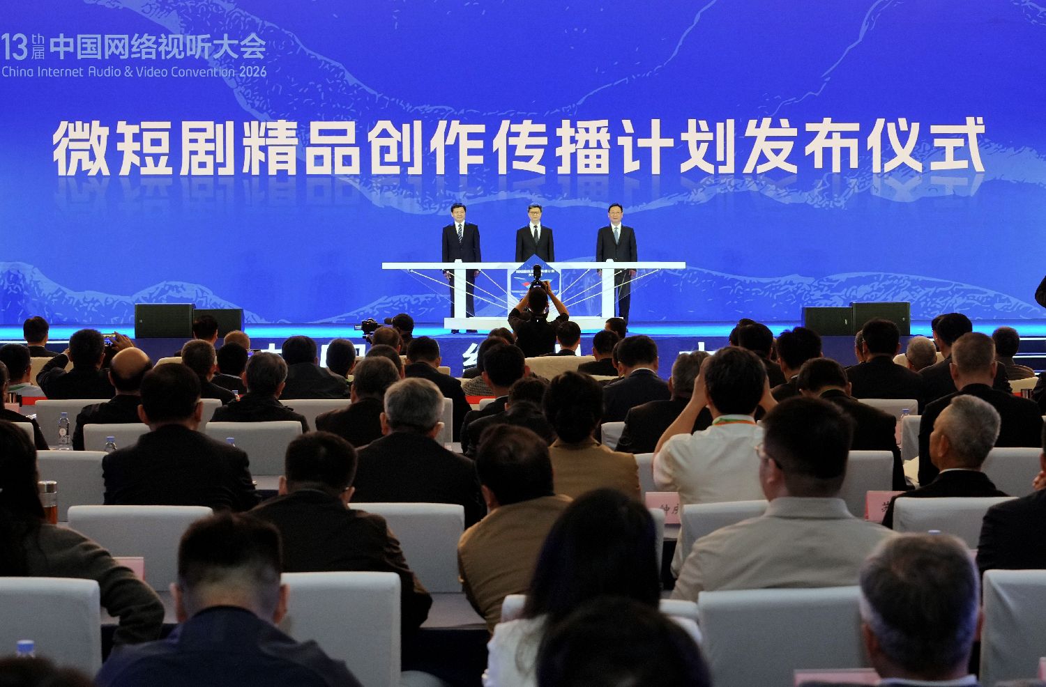 4月15日,第十三届中国网络视听大会开幕式在成都举行,图为开幕式上的微短剧精品创作传播计划发布仪式。(图片来源:中新社)
