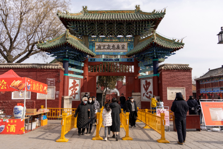 图为2月1日,游客在河南省安阳市汤阴县岳飞纪念馆参观。(图片来源:中新社)