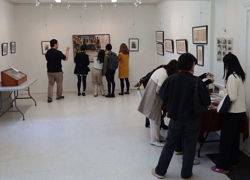 展览当天,亚太和平博物馆的统筹策划刘美玲带着八位义工前来。