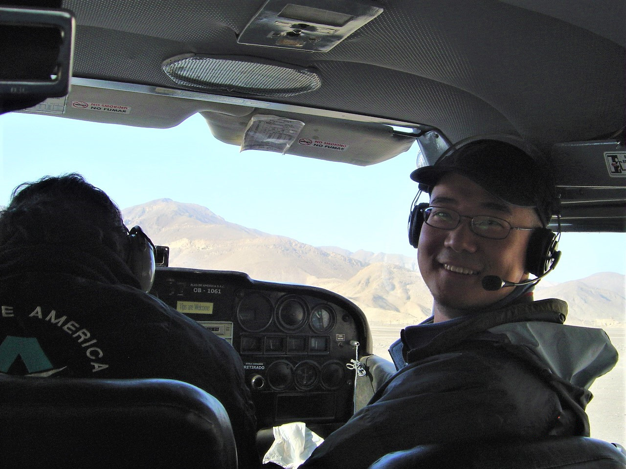 飞机真小,加上飞机驾驶员也只能乘四人,趁机拍照留念。