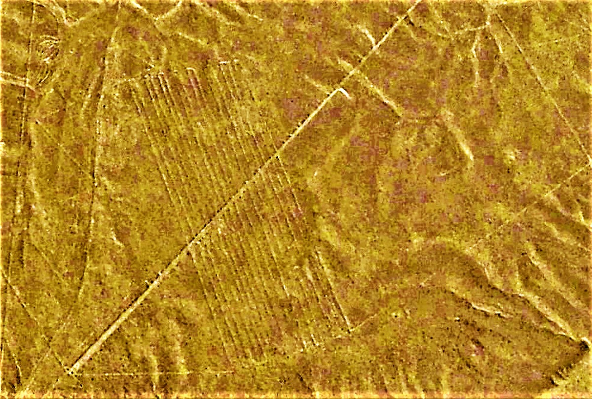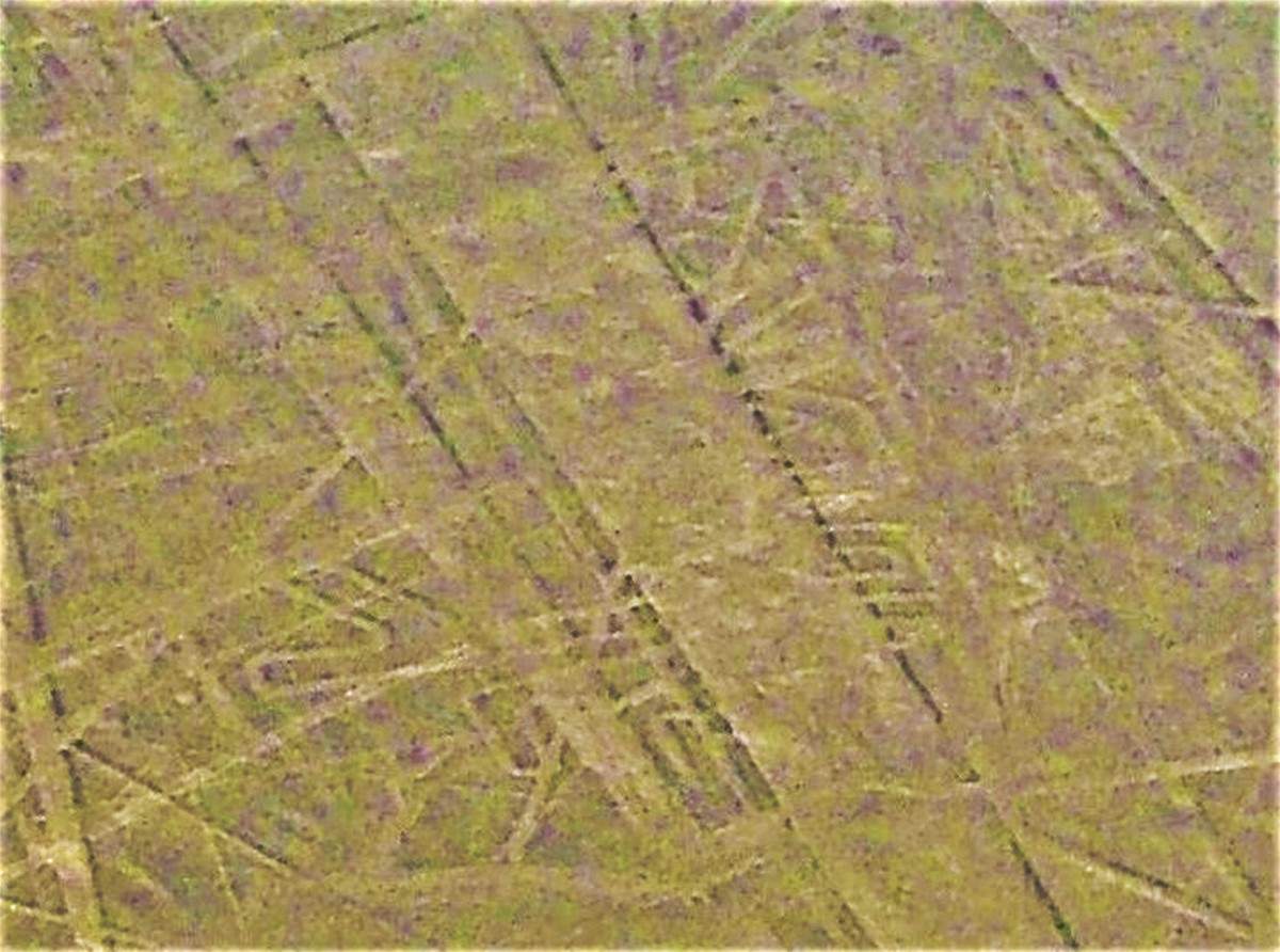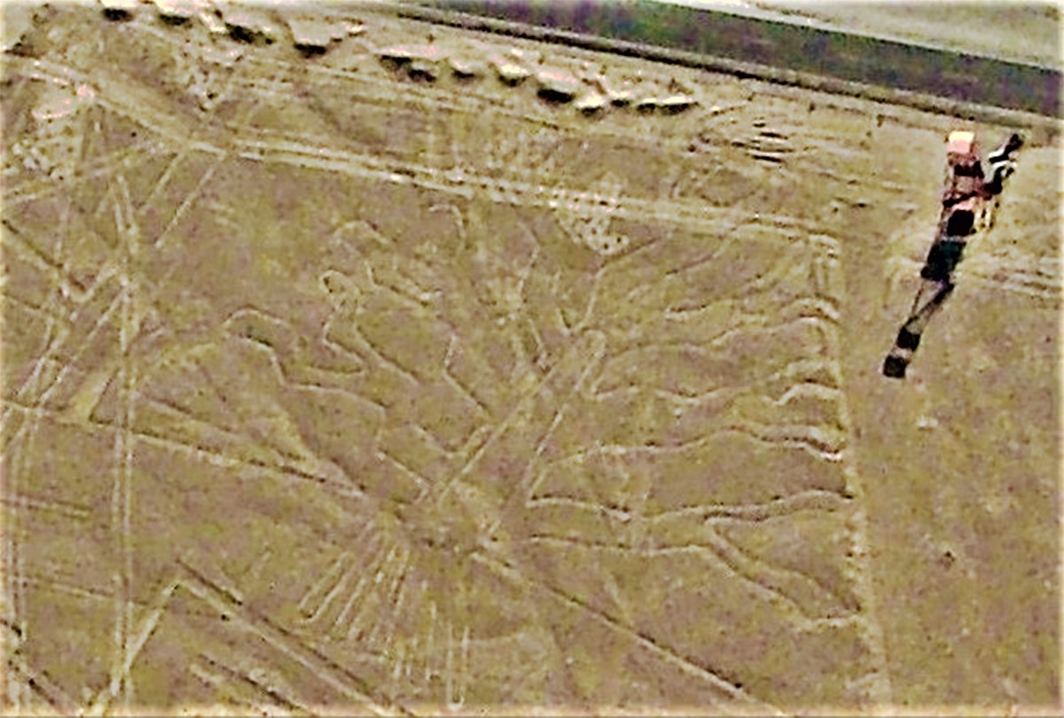 很快就飞到景点上空,首先看到的是直角相连的两条直线,飞行员介绍看到的这些笔直的纳斯卡线条产生于公元前200年到公元后300年。它们已经静静地躺在那儿两千多年了。这些线条、图案都是怎么制作出来的呢?真的令人惊叹。