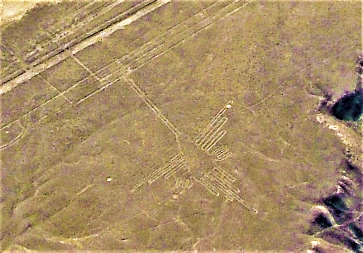 蜂鸟的图案,它在地上大概有300米长,尽管这些图案巨大无比,但它们都是一笔画成的,没什么断开之处。