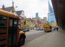 有些饿了,这离中国城不远,去那吃顿中国饭吧,老吃汉堡包,都吃腻了,这里停了不少校车,看样子,学生要放学了,