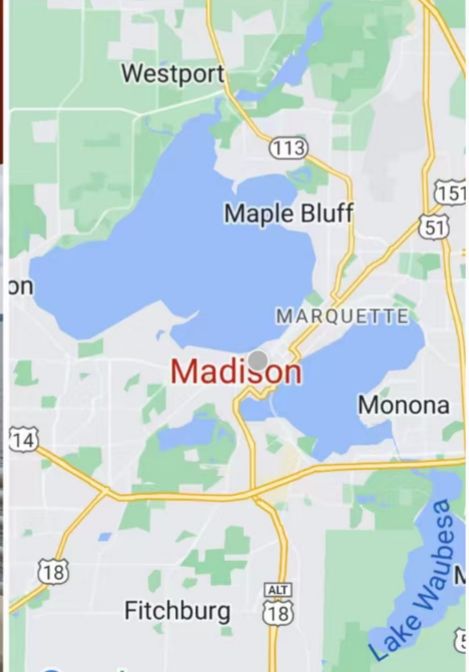 麦迪逊(Madison),威斯康星州(Wisconsin) 首府,是一个不到30万人的城市。这是一个由四个湖泊和陆地,自行车道,星罗棋布的公园、公共和私人高尔夫球场组成的绿色城市。麦迪逊市中心坐落在两座美丽湖泊之间的狭长地带,西北是较大的Lake Mendota,东南是较小的Lake Monona,在市中心不远处还有另外两座湖泊,这四座湖泊犹如四颗明珠镶嵌在麦迪逊市的周围。因此,麦迪逊也被称为“四湖之城”(The City of Four Lakes),是一座魅力十足的湖泊、花园城市。麦迪逊是一座注重居民健康的城市,拥有美国最具规模的自行车道系统之一。许多主要街道都带有指定的自行车道以确保行驶安全。麦迪逊是美国最适合骑自行车的五大城市之一。
