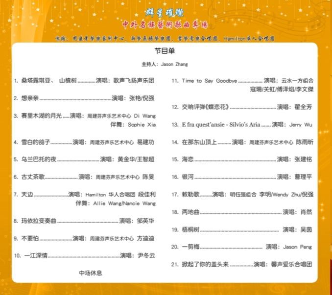 2023年8月20日(星期天)晚上7点,《第三届群星璀璨演唱会》第三场在密西沙加市 Maja Prentice Theatre 剧院成功举办。