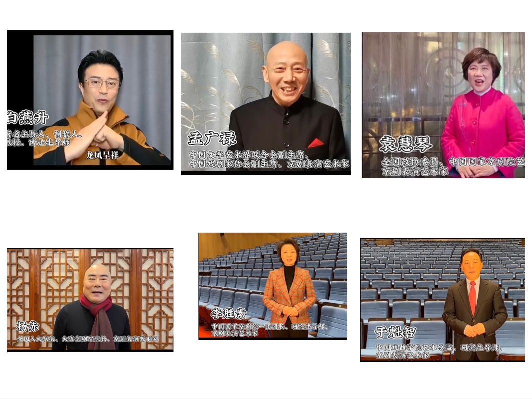 另外,发来贺词的名家有:著名主持人、制作人、教授、博士生导师白燕升;中国文学艺术界联合会副主席、中国戏剧家协会副主席、京剧表演艺术家孟广禄;全国政协委员、中国国家京剧院艺术总监、京剧表演艺术家袁慧琴;全国人大代表、大连京剧院院长、京剧表演艺术家杨赤;中国国家京剧院一团团长、研究生导师、京剧表演艺术家李胜素和中国戏曲学院艺术总监、研究生导师、京剧表演艺术家于魁智。