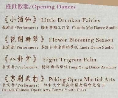 加中戏协每年主办“春、秋、春节” 三大系列、各有风格的戏曲专场汇演,“欢乐春节”春晚是每年的重头戏,是和观众朋友们共襄国粹盛举。