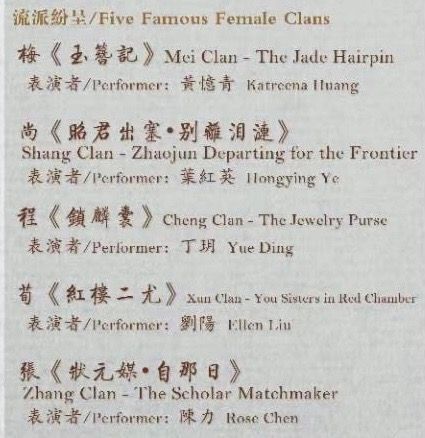 《流派纷呈》呈现的是原汁原味的梅派(梅兰芳)、尚派(尚小云)、程派(程砚秋)、荀派(荀慧生)和张派(张君秋)不同流派的名家名段。