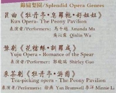 此次演出除京剧外,在《锦绣梨园》版块还有让人如痴如醉的大剧种昆曲、豫剧片段,还有来自中国明代戏曲家汤显祖家乡的地方稀有剧种江西采茶戏。