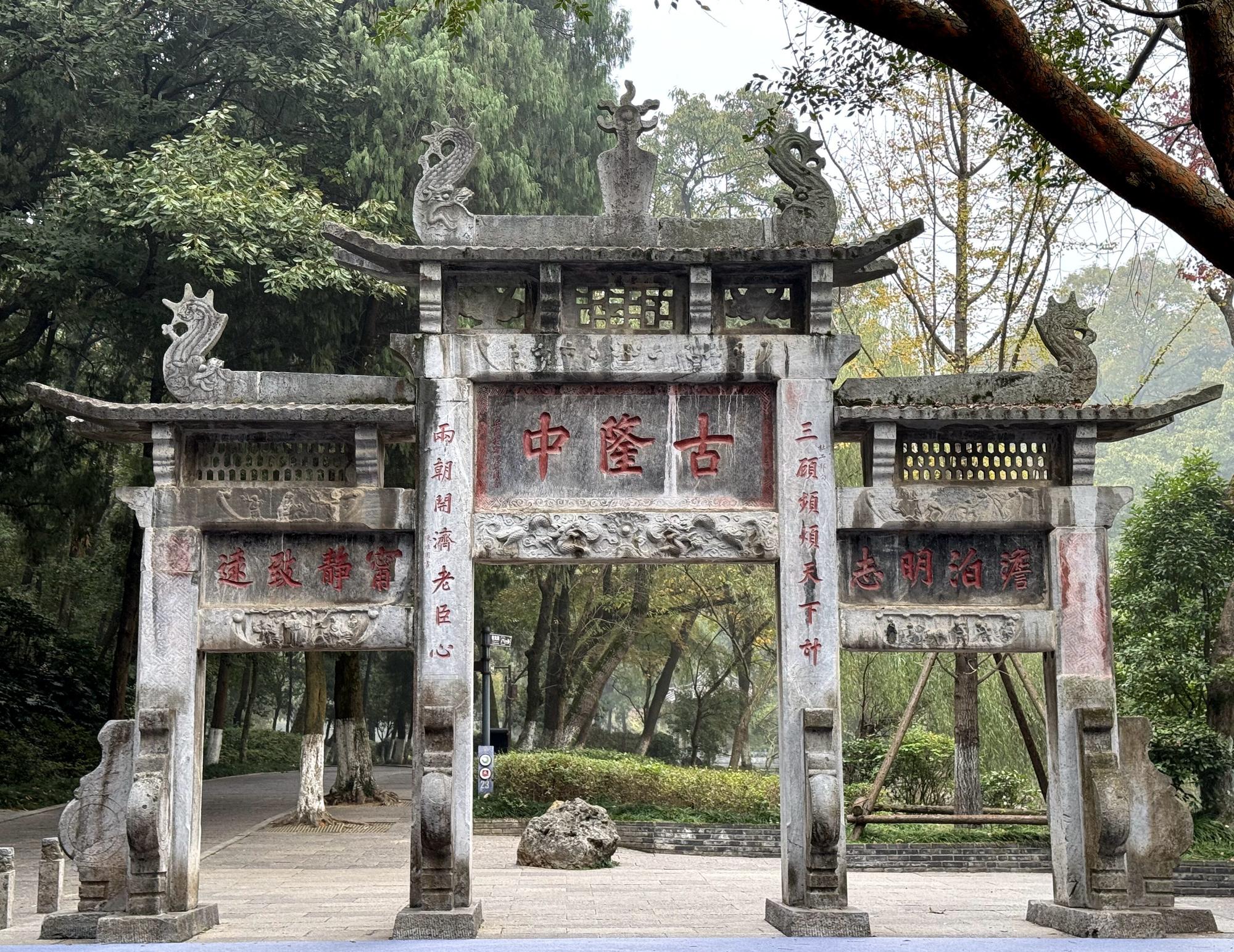 石牌坊是古隆中的标志性建筑,清光绪十九年所建,宽约10米,高约6米,气势巍然。