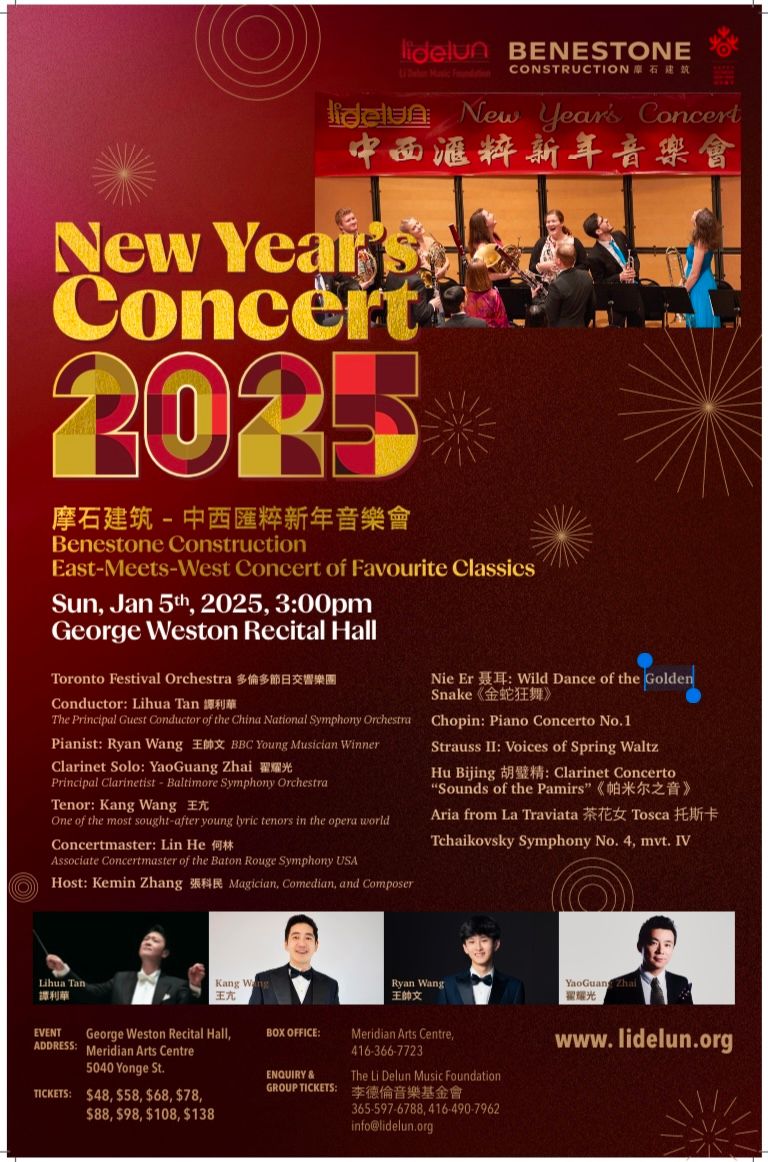 在文化生活相当丰富、一年四季各种演出频繁不断的多伦多,《中西汇粹新年音乐会》以其传承性、音乐纯粹性和艺术高质量成为音乐爱好者们的喜爱、向往和敬意,成为每年多伦多新年不可或缺的文化盛事!