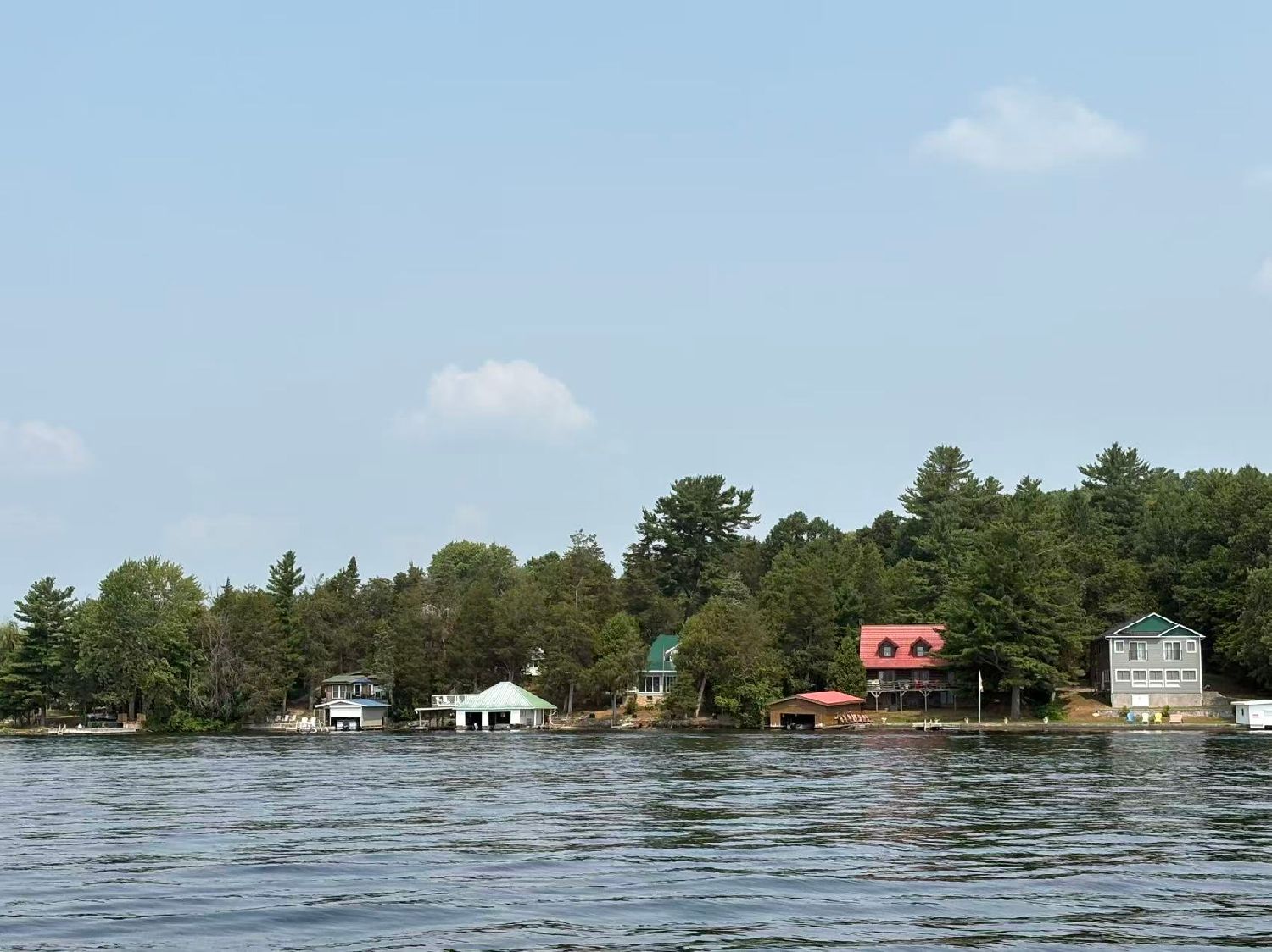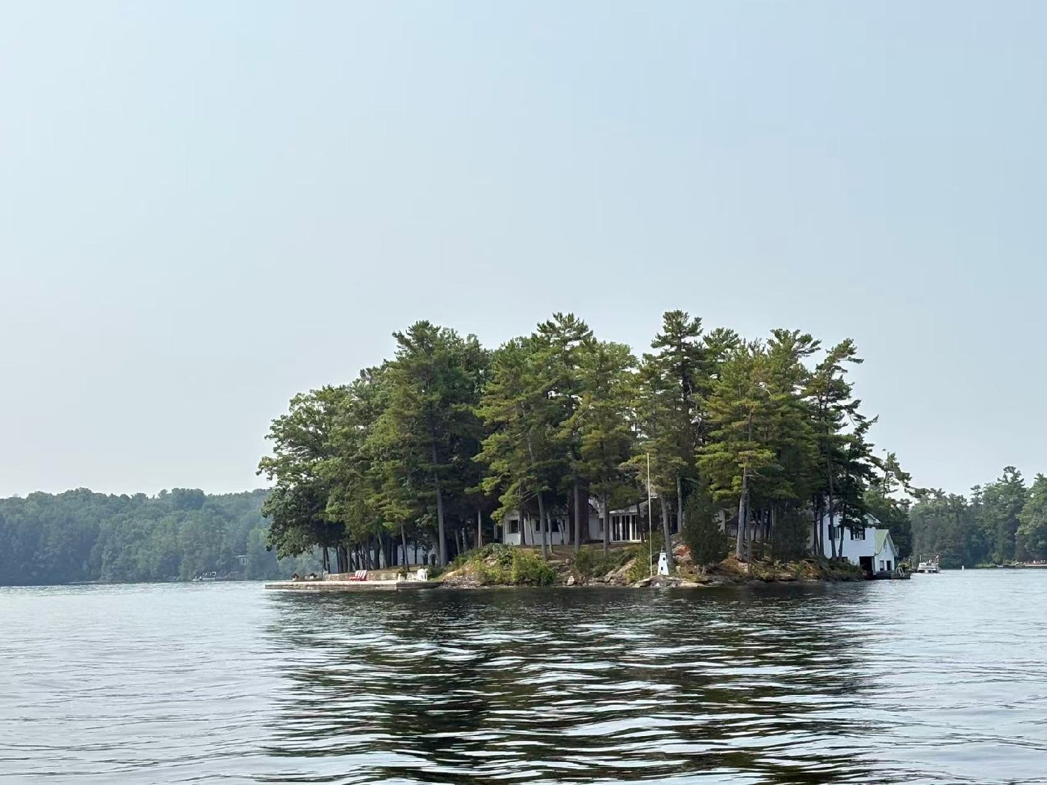 朋友几乎每年夏天都邀请我来这个度假屋过周末。这里湖水清晰干净,湖滩适宜,湖中小岛林立,周围树木环绕,森林茂盛,鸟语花香,真感慨大自然的鬼斧神工创造出如此多娇美景和宜人环境。在度假屋的生活总是宁静快乐的,坐在度假屋前台上,看日出,看夕阳,呼吸清新空气,举头远眺湖光山色。在这样的环境中与老朋友相聚,美酒佳肴,载歌载舞,欢声笑语,或坐游艇兜风,领略湖岛水色树林鸟花,与湖中同游的人们招呼致意,与垂钓者示意问好,或感受船艇的速度激情,或慢行荡漾随波起伏,惬意之至。