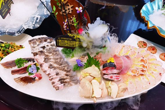 新鲜、丰富的鲟鳇全鱼火锅涮品。(图片来源:中新社)