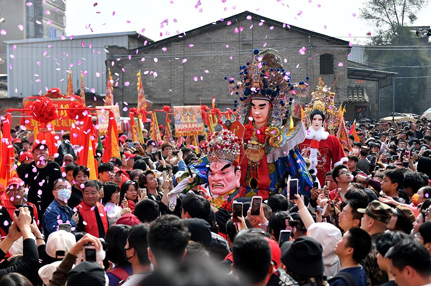 2月19日,一场传统游神民俗活动在福建省福州市长乐区潭头镇厚福村举行,吸引海内外游客围观。(图片来源:中新社)